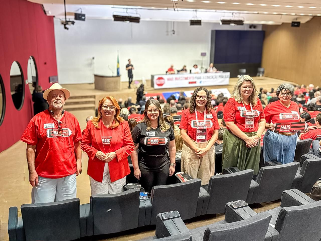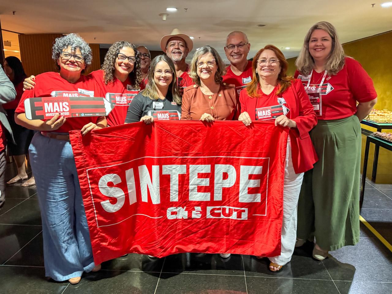 Nesta quinta-feira, dia 18/09, a Confederação Nacional dos Trabalhadores em Educação (CNTE) e a Internacional da Educação para a América Latina (Ieal), relançaram as campanhas  “Mais investimento para a Educação Pública” e “Não venda a minha escola”, na Câmara dos Deputados, em Brasília. A iniciativa busca fortalecer a escola pública e ampliar o investimento no setor. Representaram o Sintepe, a Presidenta Ivete Caetano, a vice-presidenta Cíntia Sales, os/as diretores/as Paulo Ubiratan, Professora Li Soares, Marília Cibelli e da Coordenadora do Núcleo Regional Professora Raiane.