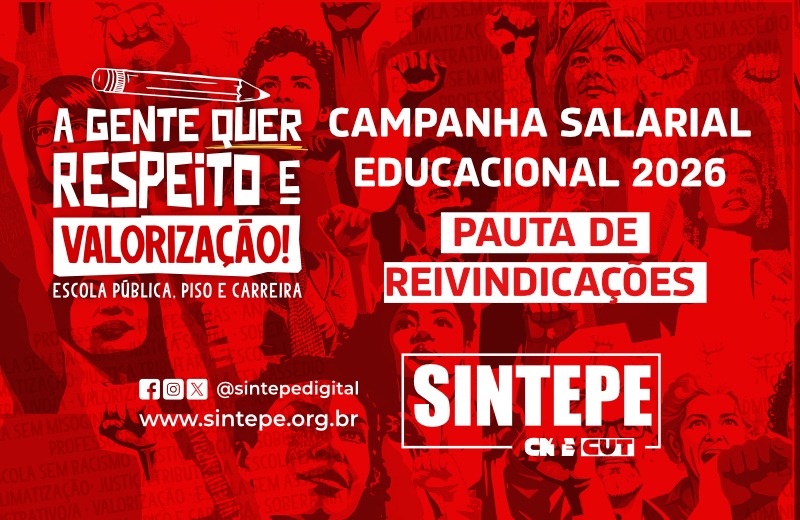O Sintepe apresenta as reinvindicações aprovadas na Campanha Salarial Educacional 2026 com destaque para a atualização do Piso Salarial Nacional do Magistério, com repercussão em toda a carreira dos servidores e servidoras da Secretaria de Educação de Pernambuco. Dentre os demais pontos de reivindicação estão a incorporação das gratificações; formação continuada e diversos outros temas.