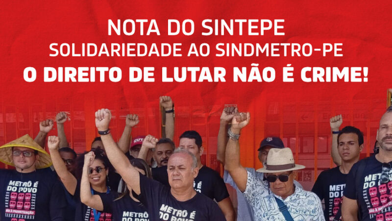 O Sintepe (Sindicato dos Trabalhadores em Educação de Pernambuco) vem a público manifestar sua mais veemente solidariedade ao Sindmetro-PE (Sindicato dos Metroviários de Pernambuco). Manifestamos também nosso repúdio à ação ilegal da Polícia Militar de Pernambuco contra o presidente da entidade, Luiz Soares, nesta segunda-feira (3), predendo-o sem motivação legal.