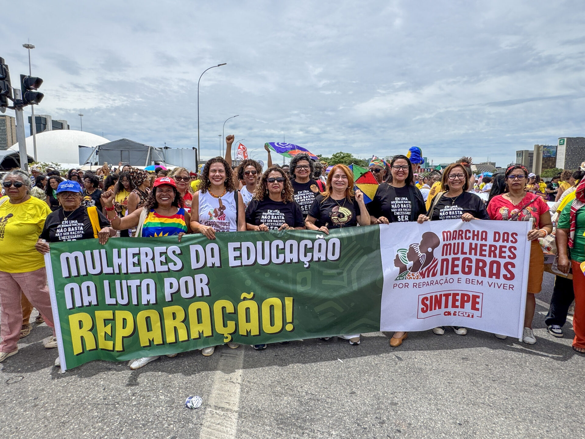 Durante o percurso, a delegação do Sintepe encontrou grupos e organizações de diversos estados que compartilham a mesma premissa de luta por dignidade, pelo enfrentamento ao racismo e ao feminicídio e por mais mulheres negras ocupando espaços de decisão e liderança. A mobilização expressou a força coletiva de um movimento que há décadas denuncia desigualdades e reivindica reparação e bem viver.